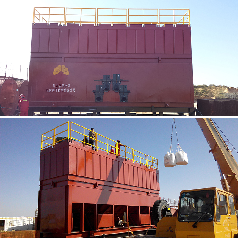 100立方沙漏主要用于石油鉆探壓裂,此設(shè)備可將大量壓裂鉆探所需的砂礫或者陶粒進(jìn)行整裝分層儲備,配合取砂車進(jìn)行石油壓裂鉆井作業(yè),效率大幅度增加。