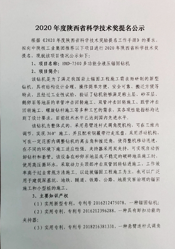 2020年度陜西省科學(xué)技術(shù)獎提名公示